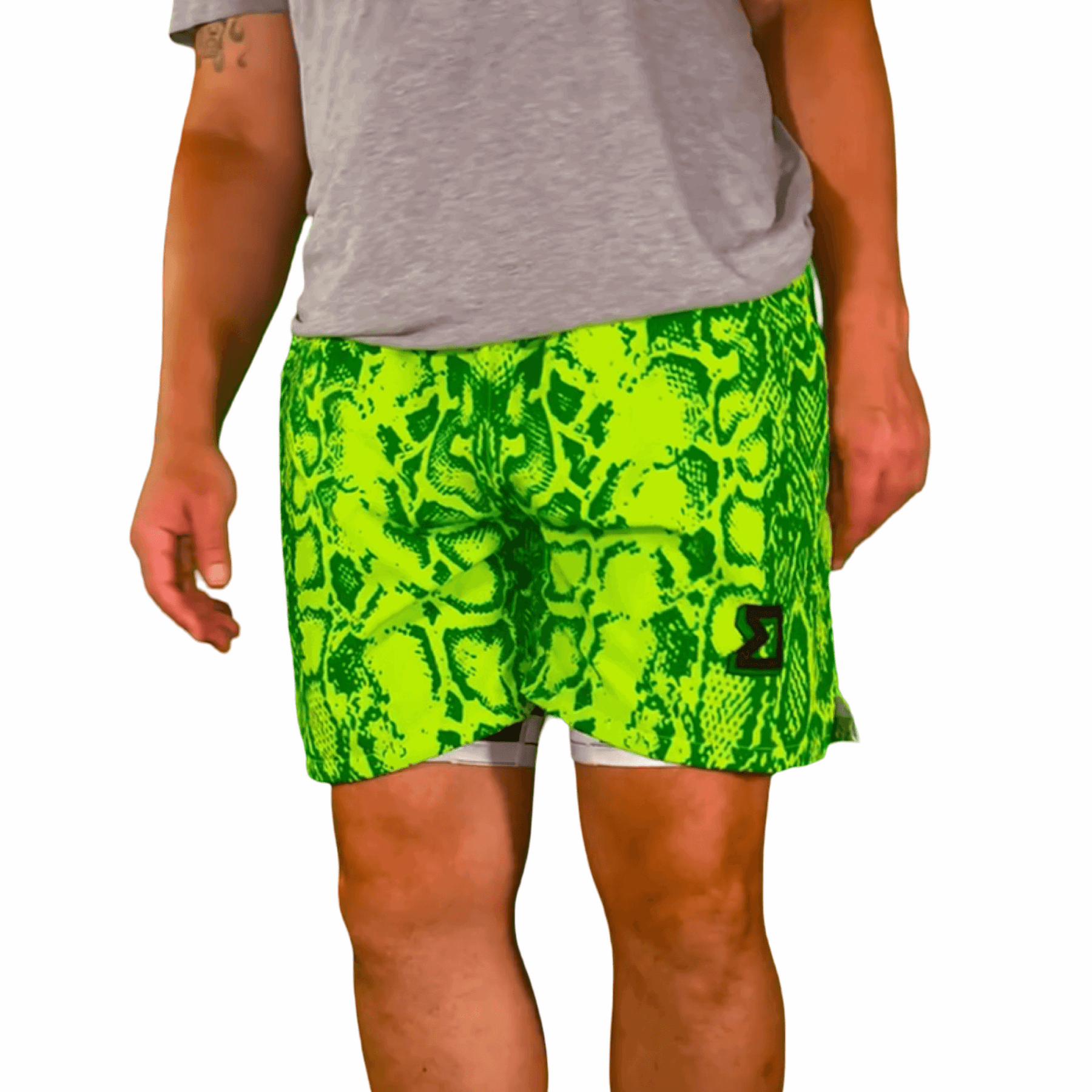 Unleash your inner beast with the NEON MAMBA GO Shorts from Trap'N Shorts—designed for those who dominate both in the gym and in the water. Featuring a bold neon yellow snake pattern on striking green fabric, these lined shorts offer elite versatility for intense workouts, swim sessions, or everyday wear. Made with lightweight, quick-dry material, they keep you comfortable no matter where the day takes you. Plus, with deep side pockets and a rear pocket, your essentials stay safe while you stay focused.