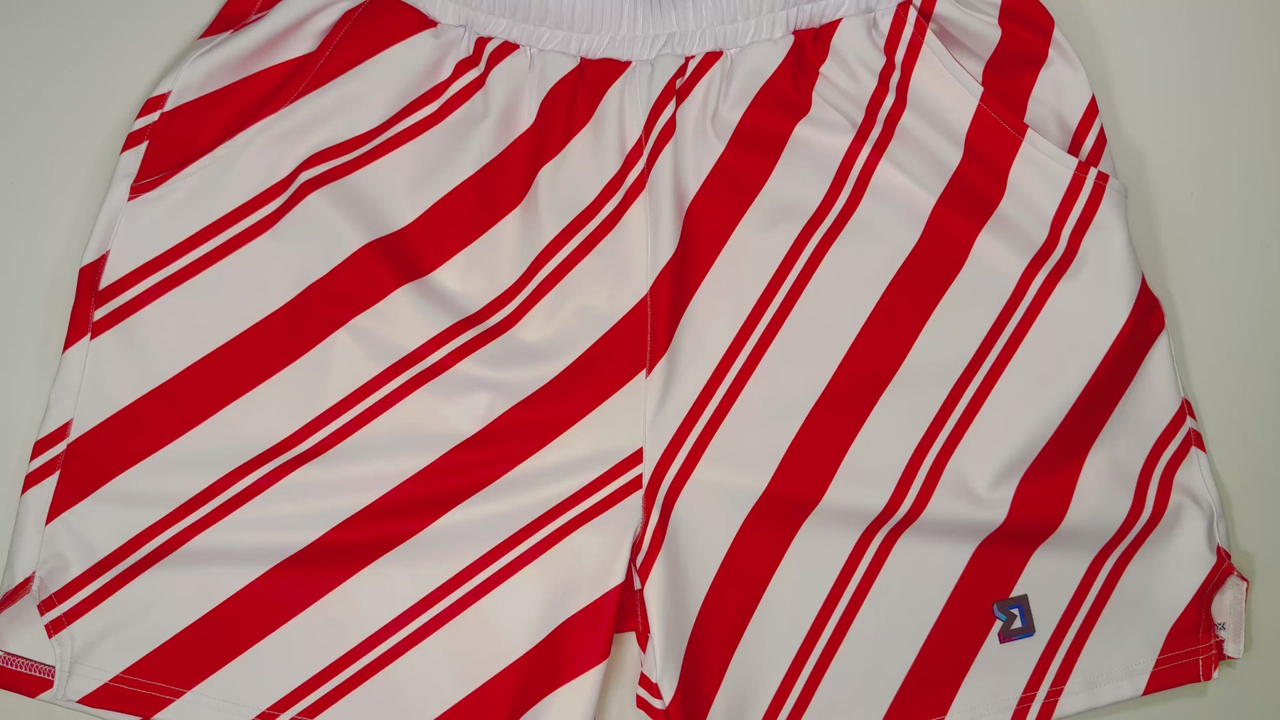 The Soft Quick-Dry StripeOut Red shorts flip a classic diagonal stripe into a bold, high-energy graphic—white base, fire-red angled stripes, and a clean athletic silhouette built for movement.