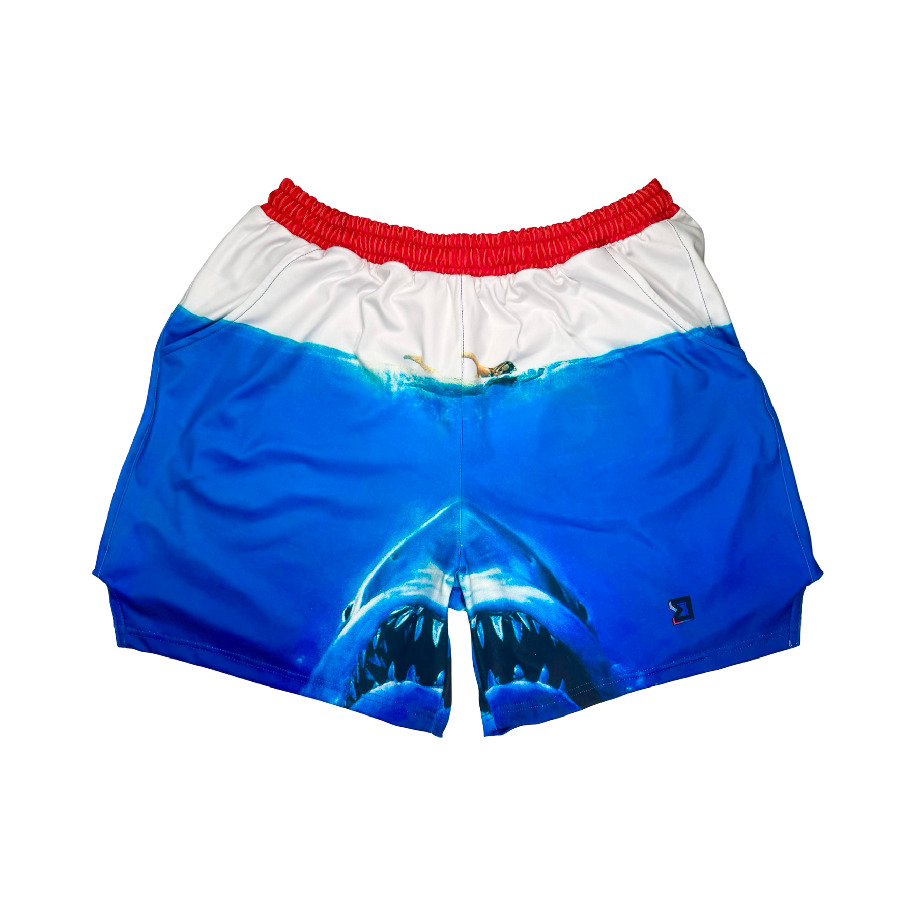 The Soft Quick-Dry Shark’n shorts dive straight into high-energy visuals—bright surf up top, deep-blue bite zone below. A fearless graphic for hoopers and athletes who gravitate toward statement pieces.