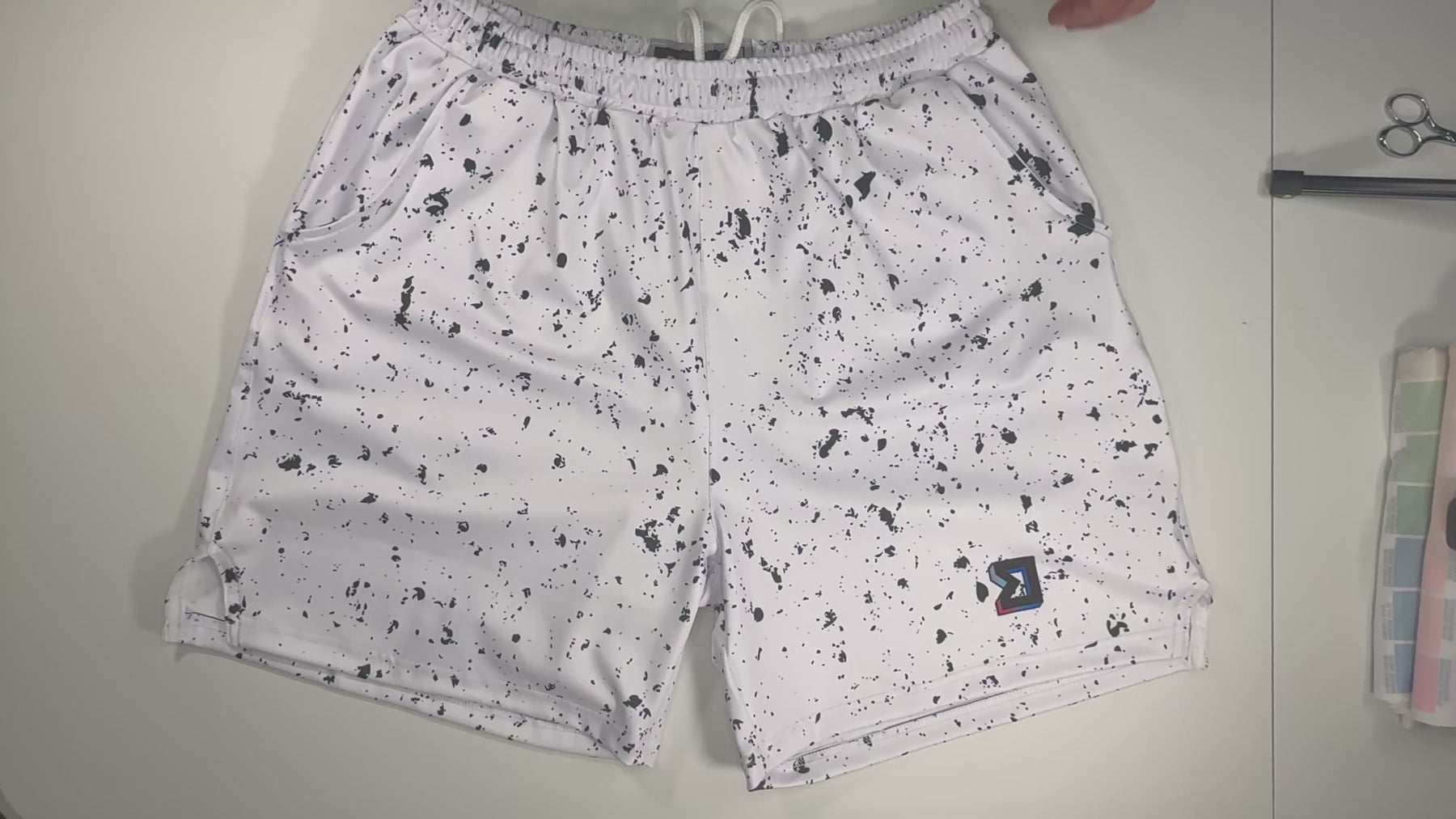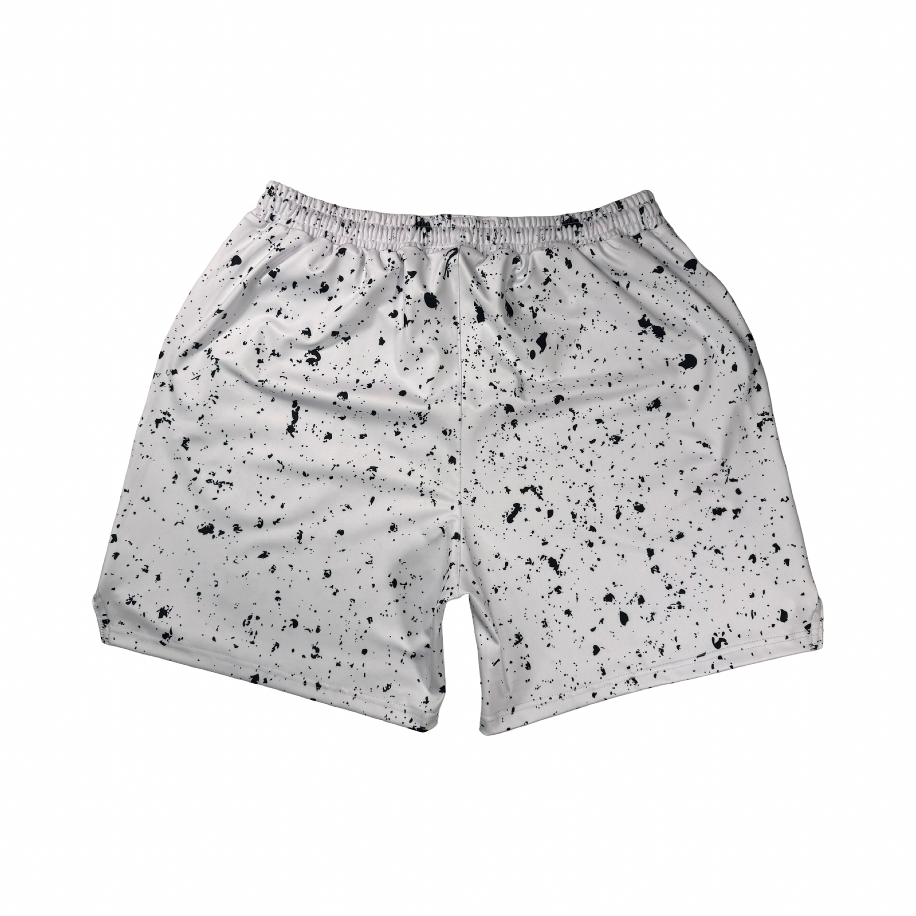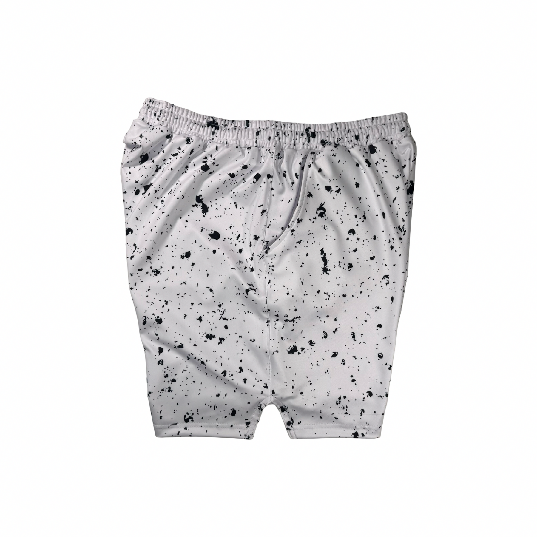 Speckle Soft QD basketball shorts with white/black splatter design. Lightweight, smooth, moisture-wicking  by Trap’N Shorts.