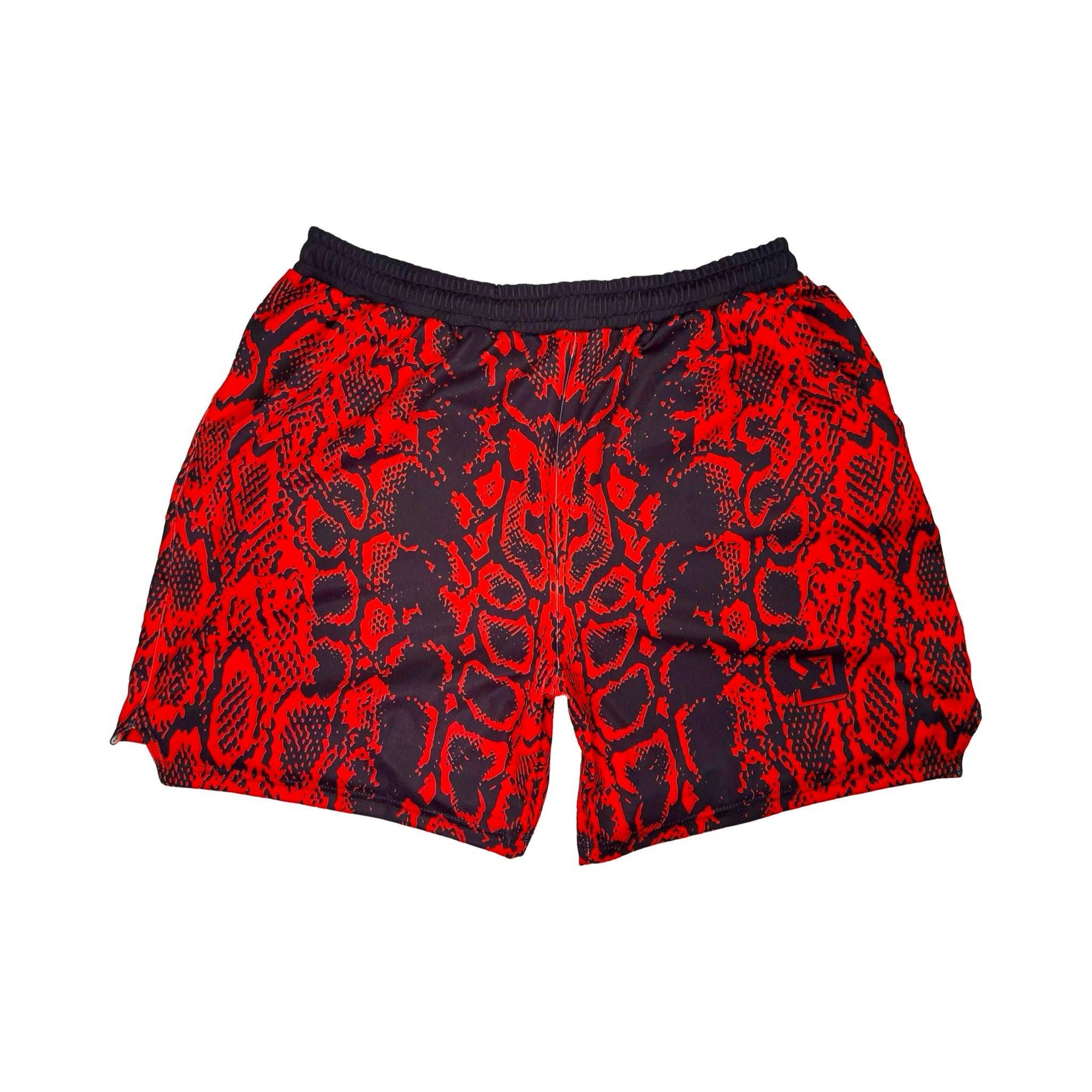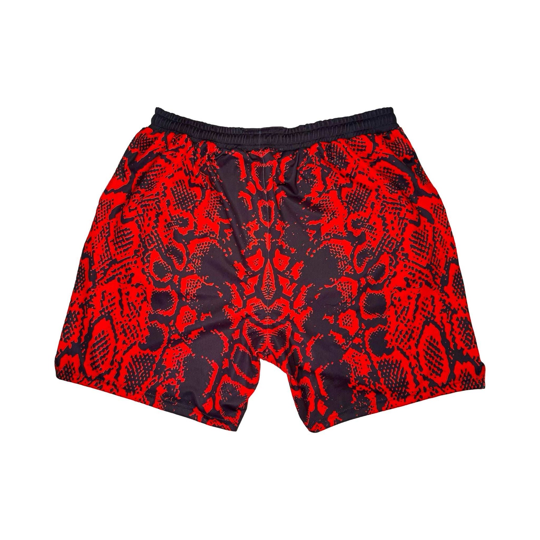 RED MAMBA | Red & Black Snake Pattern Mesh Basketball Shorts Trap'n Shorts