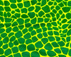 • Bright neon green reptile pattern + red accents
